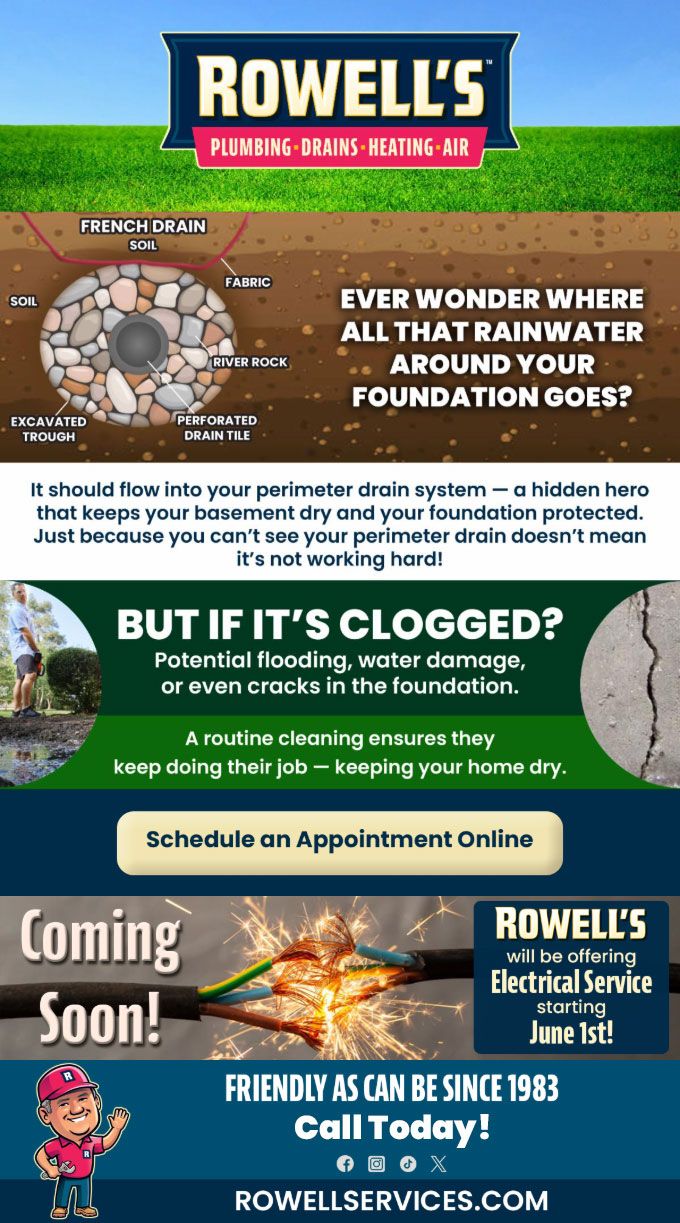 "Friendly As Can Be Since 1983!" When you need help with your plumbing, drains, heating, cooling or electrical in Plymouth, you can always rely on Rowell's Services! Call us now or book online!